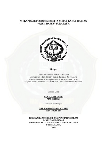 Much. Arif Ludfi, NIM.: 03210027 (2008) MEKANISME PRODUKSI BERITA SURAT KABAR HARIAN “REK AYO REK” SURABAYA. Skripsi thesis, UIN SUNAN KALIJAGA YOGYAKARTA.