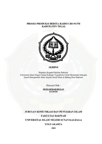 Muhammad Rezan, NIM.: 01210520 (2008) PROSES PRODUKSI BERITA RADIO CBS 94 FM KABUPATEN TEGAL. Skripsi thesis, UIN SUNAN KALIJAGA YOGYAKARTA.