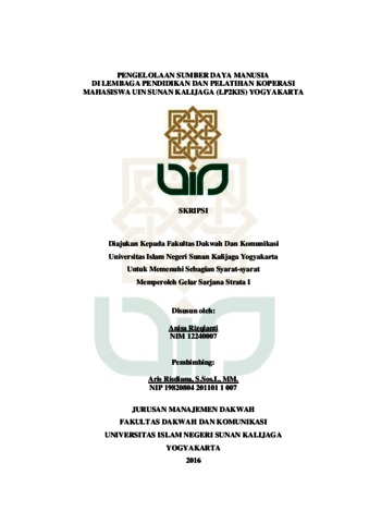 Text (PENGELOLAAN SUMBER DAYA MANUSIA DI LEMBAGA PENDIDIKAN DAN PELATIHAN KOPERASI MAHASISWA UIN SUNAN KALIJAGA (LP2KIS) YOGYAKARTA)