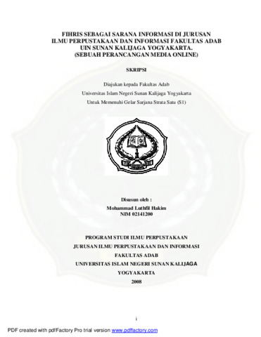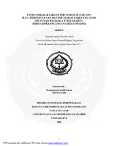 Text (FIHRIS SEBAGAI SARANA INFORMASI DI JURUSAN ILMU PERPUSTAKAAN DAN INFORMASI FAKULTAS ADAB UIN SUNAN KALIJAGA YOGYAKARTA. (SEBUAH PERANCANGAN MEDIA ONLINE))