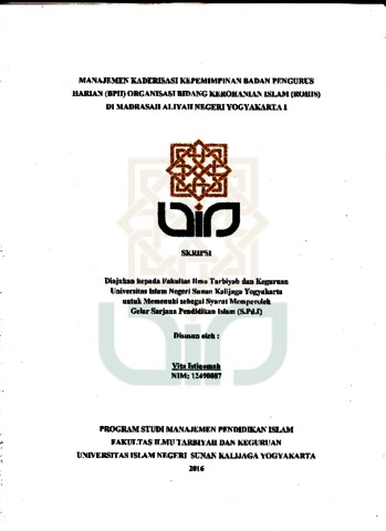 Text (MANAJEMEN KAIERISASI KEPEMIMPINAI\[ BAIAN PENGURUS RRARRAN (BPH) ORGANTSAST BRRLANC KEROHANTAN ISLAM (ROETS) DI MADRASAH ALTYAH NEGERI YOGYAKARTA I SKRIPSI DIAJUKAN KEPADA FAKULTAS ILMU TARBIYAH DAN KEGURUAN UNIVERSITAS ISLAM NEGERI SUNAN KALIJAGA YOGYAKA)