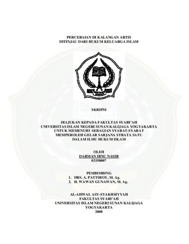 Darman Ibnu Nasir, NIM.: 03350007 (2008) PERCERAIAN DI KALANGAN ARTIS DITINJAU DARI HUKUM KELUARGA ISLAM. Skripsi thesis, UIN SUNAN KALIJAGA YOGYAKARTA.