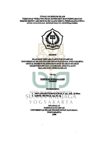 Text (TINJAUAN HUKUM ISLAM TERHADAP PERLINDUNGAN KONSUMEN DAN PERSYARATAN TEKNIS DEPOT AIR MINUM ISI ULANG SERTA PERDAGANGANNYA (STUDI ANALITIS KEP. MENPERINDAG NO. 651/MPP/KEP/10/2004))