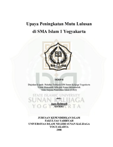 Agus Rohmadi, NIM.: 03470583 (2008) UPAYA PENINGKATAN MUTU LULUSAN DI SMA ISLAM 1 YOGYAKARTA. Skripsi thesis, UIN SUNAN KALIJAGA YOGYAKARTA.