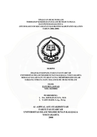 Text (TINJAUAN HUKUM ISLAM TERHADAP KEKERASAN DALAM RUMAH TANGGA DAN PENYELESAIANNYA (STUDI KASUS DI KECAMATAN KALIKOTES KABUPATEN KLATEN TAHUN 2006-2008))