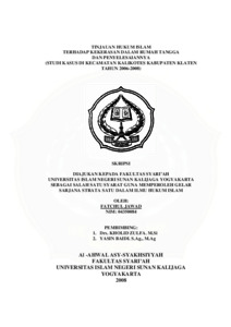 Keluarga adalah masyarakat terkecil tempat dimulainya bimbingan individu. Ia tumbuh sejak lahir dalam lingkungan masyarakat kecil ini, sebagai karakternya terbentuk sesuai dengan karakter keluarga. Namun dalam membentuk sebuah keluarga yang baik, tidak semudah yang dibayangkan kebanyakan orang, karena dalam sebuah keluarga pasti muncul permasalahan-permasalahan yang harus diselesaikan, salah satunya adalah permasalahan dalam rumah tangga yang harus diselesaikan untuk membentuk keluarga yang sakinah, mawaddah dan rahmah. Kekerasan dalam rumah tangga disini diartikan sebagai tindak kekerasan yang secara umum dilakukan dalam kehidupan rumah tangga seperti pemukulan, penganiayaan bahkan sampai pembunuhan. Dalam penelitian ini penyusun mencoba untuk menggali lebih dalam mengenai kekerasan dalam rumah tangga, khususnya yang terjadi di wilayah Kecamatan Kalikotes Kabupaten Klaten. Alasan terjadinya kekerasan dalam rumah tangga di Kecamatan Kalikotes disebabkan karena beberapa faktor antara lain: perbedaan pemikiran antara suami istri, permasalahan ekonomi, kurangnya pemahaman agama, dan ketidak tahuan terhadap hukum. Bentuk-bentuk kekerasan yang terjadi adalah penganiayaan fisik, penganiayaan psikis, dan penganiayaan seksual yang seharusnya tidak terjadi dalam kehidupan rumah tangga. Kemudian penyelesaian yang dilakukan adalah ada beberapa bentuk penyelesaian yaitu secara kekeluargaaan, secara prosedural yang dilakukan pihak kepolisian dan pengadilan. jadi, apabila sudah diketahui alasan-alasan dari kekerasan dalam rumah tangga tersebut diharapkan sebuah keluarga bisa mengendalikan diri untuk tidak melakukan tindak kekerasan, dan apabila kekerasan dalam rumah tangga bisa dihindari, maka akan terciptalah rumah tangga yang bahagia dan terbebas dari segala bentuk kekerasan. Dengan menganalisis permasalahan di atas, penyusun menganalisis data dengan menggunakan pendekatan sosiologis, psikologis dan normatif dan melakukan interview kepada Ka-nit Sat-Reskrim Polres Klaten, staf Pengadilan Agama Klaten, dan diperkuat dengan data yang ada. Dan dalam penyelesaian tindak kekerasan dalam rumah tangga yang ada di masyarakat Kecamatan Kalikotes Kabupaten Klaten. Setelah dilakukan penelitian di lapangan, permasalahan ideologi, ekonomi, kurangnya pemahaman terhadap ajaran agama, dan kurang sadarnya masyarakat terhadap hukum menjadi faktor utama penyebab tindak kekerasan dalam rumah tangga yang terjadi di Kecamatan Kalikotes. Bentuk-bentuk kekerasan tersebut cenderung pada kekerasan fisik dari pada kekerasan psikis karena melihat korban yang mengeluh sakit badan dari pada sakit batinnya. Hal ini dikaitkan dengan tujuan hukum Islam (maqasid as-syari’ah) yang juga menggunakan teori-teori keilmuan sebagai bahan analisis dan konsep malahah mursalah. Dan Islam memandang penyelesaian kekerasan yang ada di Kecamatan Kalikotes tersebut tepat karena sudah sesuai dengan peraturan perundang-undangan Indonesia dan demi kemaslahatan bersama sehingga mendapatkan keadilan yang seadil-adilnya.