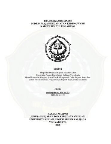 Sodiq Heru Riyanto, NIM.: 02121110 (2008) TRADISI KAWIN MAJAN DI DESA MAJAN KECAMATAN KEDUNGWARU KABUPATEN TULUNGAGUNG. Skripsi thesis, UIN SUNAN KALIJAGA YOGYAKARTA.
