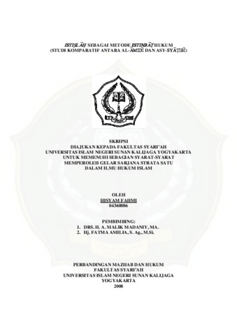 Hisyam Fahmi, NIM.: 04360086 (2008) ISTISLAH SEBAGAI METODE ISTINBAT HUKUM (STUDI KOMPARATIF ANTARA AL-AMIDI DAN ASY-SYATIBI). Skripsi thesis, UIN SUNAN KALIJAGA YOGYAKARTA.