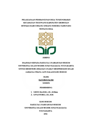 FATCHUN NA’IM, NIM. 12340052 (2016) PELAKSANAAN PEMBANGUNAN DESA TUNJUNGHARJO KECAMATAN TEGOWANU KABUPATEN GROBOGAN DITINJAU DARI UNDANG-UNDANG NOMOR 6 TAHUN 2014 TENTANG DESA. Skripsi thesis, UIN SUNAN KALIJAGA YOGYAKARTA.