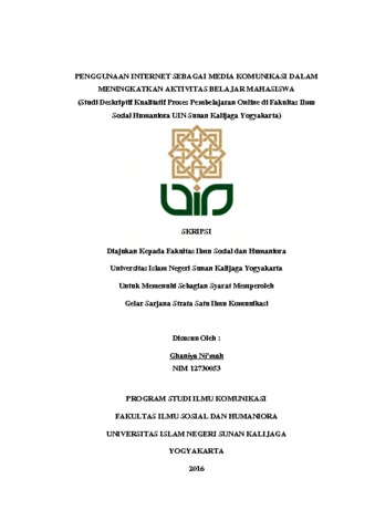 GHANIYA NI’MAH, NIM. 12730053 (2016) PENGGUNAAN INTERNET SEBAGAI MEDIA KOMUNIKASI DALAM MENINGKATKAN AKTIVITAS BELAJAR MAHASISWA (STUDI DESKRIPTIF KUALITATIF PROSES PEMBELAJARAN ONLINE DI FAKULTAS ILMU SOSIAL HUMANIORA UIN SUNAN KALIJAGA YOGYAKARTA). Skripsi thesis, UIN SUNAN KALIJAGA YOGYAKARTA.