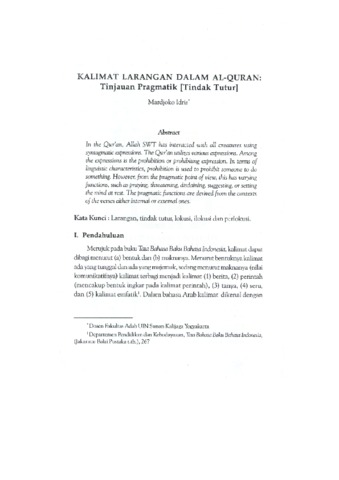 Text (KALIMAT LARANGAN DALAM AL-QURAN: Tinjauan Pragmatik [Tindak Tutur])