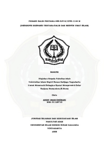 Arief Imam Shobari, NIM.: 01120710 (2008) PERANG SALIB PERTAMA 488-539 H /1095-1144 M. (DESKRIPSI EKSPANSI TENTARA SALIB DAN RESPON UMAT ISLAM). Skripsi thesis, UIN SUNAN KALIJAGA YOGYAKARTA.
