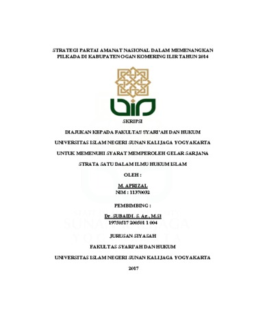 M. APRIZAL, NIM . 11370032 (2017) STRATEGI PARTAI AMANAT NASIONAL DALAM MEMENANGKAN PILKADA DI KABUPATEN OGAN KOMERING ILIR TAHUN 2014. Skripsi thesis, UIN SUNAN KALIJAGA YOGYAKARTA.