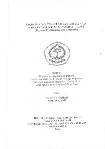 UMMI FARIKHAH, NIM. 00420402 (2006) PROBLEMATIKA PEMBELAJARAN BAHASA ARAB, SISWA KELAS I MTS NU MUALLIMAT KUDUS (TINJAUAN PROBLEMATIKA NON LINGUISTIK). Skripsi thesis, UIN SUNAN KALIJAGA.
