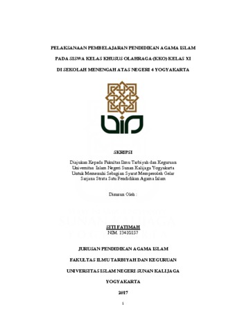 SITI FATIMAH, NIM. 13410157 (2017) PELAKSANAAN PEMBELAJARAN PENDIDIKAN AGAMA ISLAM PADA SISWA KELAS KHUSUS OLAHRAGA (KKO) KELAS XI DI SEKOLAH MENENGAH ATAS NEGERI 4 YOGYAKARTA. Skripsi thesis, UIN Sunan Kalijaga.