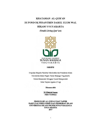 M. Khoirul Anam, NIM: 12530122 (2017) KHATAMAN AL-QUR’AN DI PONDOK PESANTREN DARUL ULUM WAL HIKAM YOGYAKARTA (Studi Living Qur’an). Skripsi thesis, UIN Sunan Kalijaga.