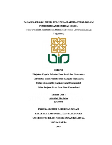 Abdullah Bin Salim, NIM. 13730093 (2017) PAKAIAN SEBAGAI MEDIA KOMUNIKASI ARTIFAKTUAL DALAM PEMBENTUKAN IDENTITAS SOSIAL (Study Deskriptif Kualitatif pada Mahasiswi Bercadar UIN Sunan Kalijaga Yogyakarta). Skripsi thesis, UIN Sunan Kalijaga.