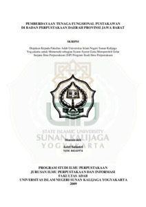Astri Sulastri, NIM.: 04141974 (2009) PEMBERDAYAAN TENAGA FUNGSIONAL PUSTAKAWAN DI BADAN PERPUSTAKAAN DAERAH PROVINSI JAWA BARAT. Skripsi thesis, UIN SUNAN KALIJAGA YOGYAKARTA.