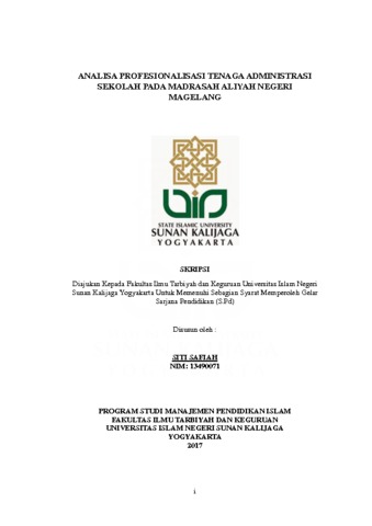 SITI SAFIAH, NIM. 13490071 (2017) ANALISA PROFESIONALISASI TENAGA ADMINISTRASI SEKOLAH PADA MADRASAH ALIYAH NEGERI MAGELANG. Skripsi thesis, UIN SUNAN KALIJAGA YOGYAKARTA.