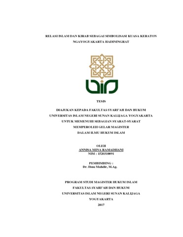 ANNISA MINA RAMADHANI, NIM. 1520310091 (2017) RELASI ISLAM DAN KIRAB SEBAGAI SIMBOLISASI KUASA KERATON NGAYOGYAKARTA HADININGRAT. Masters thesis, UIN SUNAN KALIJAGA YOGYAKARTA.