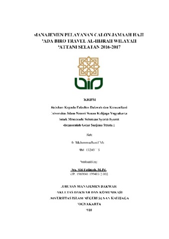 Mr. Muhammadhanif Ma, NIM. 13240115 (2018) MANAJEMEN PELAYANAN CALON JAMAAH HAJI PADA BIRO TRAVEL AL-HIJRAH WILAYAH PATTANI SELATAN 2016-2017. Skripsi thesis, UIN Sunan Kalijaga Yogyakarta.