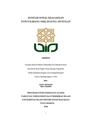 SIGIT SEPTIADI, NIM. 13540045 (2018) KONFLIK SOSIAL KEAGAMAAN DUSUN KARANG SARI, BOJONG, MUNTILAN. Skripsi thesis, UIN Sunan Kalijaga.