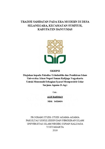 ALIF RAHMAN, NIM. 14520054 (2018) TRADISI SAMBATAN PADA ERA MODERN DI DESA SELANEGARA, KECAMATAN SUMPIUH, KABUPATEN BANYUMAS. Skripsi thesis, UIN SUNAN KALIJAGA YOGYAKARTA.