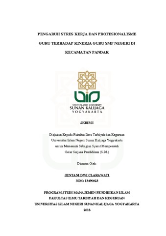 SENTANI DWI CLARAWATI, NIM. 13490023 (2018) PENGARUH STRES KERJA DAN PROFESIONALISME GURU TERHADAP KINERJA GURU SMP NEGERI DI KECAMATAN PANDAK. Skripsi thesis, UIN SUNAN KALIJAGA YOGYAKARTA.