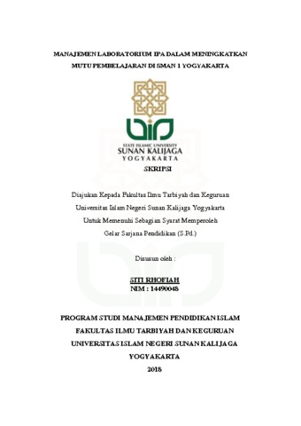 SITI RHOFIAH, NIM. 14490048 (2018) MANAJEMEN LABORATORIUM IPA DALAM MENINGKATKAN MUTU PEMBELAJARAN DI SMAN 1 YOGYAKARTA. Skripsi thesis, UIN SUNAN KALIJAGA YOGYAKARTA.