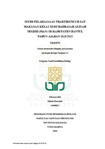 Text (STUDI PELAKSANAAN PRAKTIKUM UJI ZAT MAKANAN KELAS XI DI MADRASAH ALIYAH NEGERI (MAN) SE-KABUPATEN BANTUL TAHUN AJARAN 2018/2019)