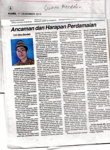 Ibnu, Burdah (2015) Ancaman dan Harapan Perdamaian. Suara Merdeka, - (-). ---. ISSN -