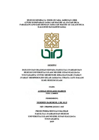 CHMAD MUDZAKKI MABRUR, NIM: 12360058 (2019) HUKUM MEMBACA ZIKIR SECARA JAHR DAN SIRR (STUDI KOMPARASI JAMA’AH MASJID AL-FATAH DESA PARAKANCANGGAH DENGAN JAMA’AH MASJID AS-SALAM DESA KALISEMI BANJARNEGARA). Skripsi thesis, UIN Sunan Kalijaga.
