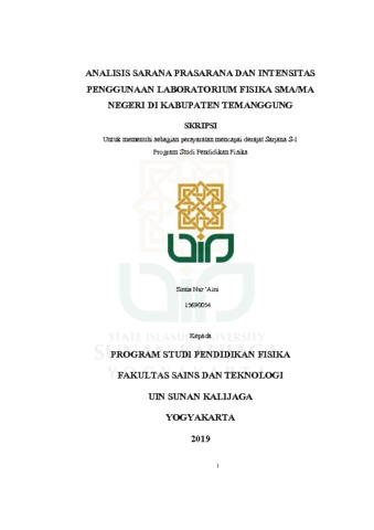 Sintia Nur ‘Aini, NIM.: 15690054 (2019) ANALISIS SARANA PRASARANA DAN INTENSITAS PENGGUNAAN LABORATORIUM FISIKA SMA/MA NEGERI DI KABUPATEN TEMANGGUNG. Skripsi thesis, UIN Sunan Kalijaga.