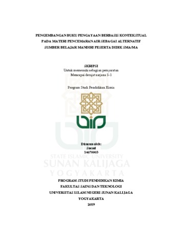Suemi, NIM.: 14670003 (2019) PENGEMBANGAN BUKU PENGAYAAN BERBASIS KONTEKSTUAL PADA MATERI PENCEMARAN AIR SEBAGAI ALTERNATIF SUMBER BELAJAR MANDIRI PESERTA DIDIK SMA/MA. Skripsi thesis, UIN Sunan Kalijaga.