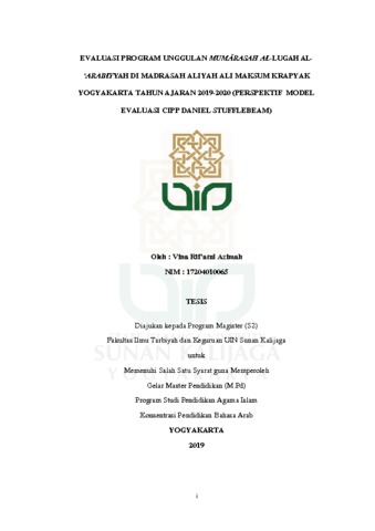 Vina Rif’atul Azimah, NIM : 17204010065 (2019) EVALUASI PROGRAM UNGGULAN MUMARASAH AL-LUGAH AL- ‘ARABIYYAH DI MADRASAH ALIYAH ALI MAKSUM KRAPYAK YOGYAKARTA TAHUN AJARAN 2019-2020 (PERSPEKTIF MODEL EVALUASI CIPP DANIEL STUFFLEBEAM). Masters thesis, UIN Sunan Kalijaga.