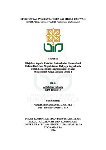Alfiah Nurrohmah, NIM. 15210013 (2020) EFEKTIVITAS INSTAGRAM SEBAGAI MEDIA DAKWAH (Studi Pada Followers Akun Instagram @xkwavers). Skripsi thesis, UNIVERSITAS ISLAM NEGERI SUNAN KALIJAGA.