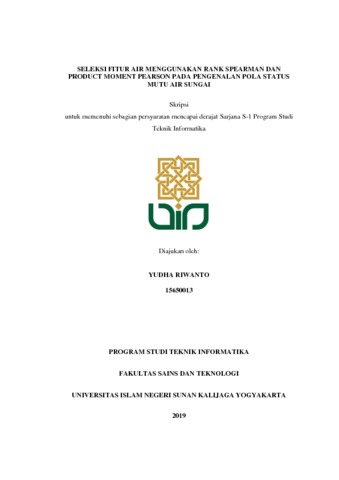 YUDHA RIWANTO, 15650013 (2019) SELEKSI FITUR AIR MENGGUNAKAN RANK SPEARMAN DAN PRODUCT MOMENT PEARSON PADA PENGENALAN POLA STATUS MUTU AIR SUNGAI. Skripsi thesis, UIN Sunan Kalijaga.