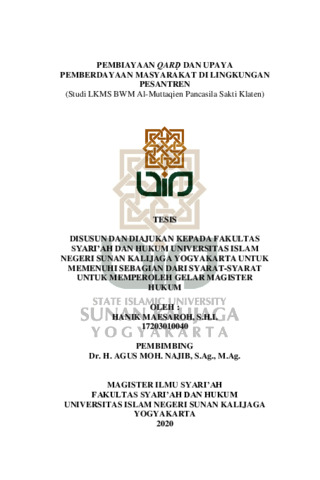HANIK MAESAROH, NIM. 17203010040 (2020) PEMBIAYAAN QARḌ DAN UPAYA PEMBERDAYAAN MASYARAKAT DI LINGKUNGAN PESANTREN (Studi LKMS BWM Al-Muttaqien Pancasila Sakti Klaten). Masters thesis, UIN SUNAN KALIJAGA YOGYAKARTA.