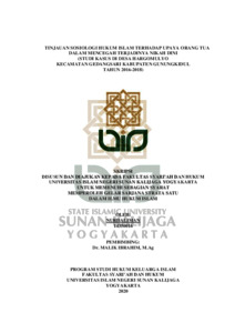 Desa Hargomulyo merupakan salah satu desa yang berada di Kecamatan Gedangsari Kabupaten Gunungkidul yang memiliki catatan kurang menggembirakan dalam hal pernikahan ideal. Di Desa Hargomulyo kasus nikah dini masih terjadi, keadaan ini dapat menghambat terwujudnya harapan keluarga sakinah mawadah wa rahmah, yang berakibat munculnya masalah-masalah sosial seperti perceraian, KDRT, putus sekolah, kemiskinan dan lain-lain. Menyadari masih terjadinya kasus nikah dini di Desa Hargomulyo diperlukan upaya-upaya yang dilakukan oleh orang tua sebagai kontrol sosial dan paling berpengaruh dalam sebuah keluarga atau anak-anaknya. Upaya tersebut menuai hasil yang menggembirakan, dari tahun ke tahun kasus nikah dini mengalami penurunan bahkan bisa menekan kasus tersebut, sehingga pada tahun 2018 Desa Hargomulyo mendapatkan Gedangsari Award kategori 3 tahun berturut-turut. Berawal dari latar belakang tersebut, maka penyusun mengambil pokok masalah 1) Apa saja upaya yang dilakukan orang tua dalam mencegah terjadinya nikah dini di Desa Hargomulyo? 2) Bagaimana tinjauan sosiologi hukum Islam terhadap upaya yang dilakukan orang tua dalam mencegah terjadinya nikah dini di Desa Hargomulyo Kecamatan Gedangsari Kabupaten Gunungkidul? Penelitian skripsi ini termasuk dalam kategori penelitian lapangan (field research) dan bersifat deskriptif analitis. Untuk mendapatkan data tersebut penyusun menggunakan metode wawancara dan dokumentasi. Data yang telah terkumpul kemudian dianalisis secara kualitatif dan cara berfikir induktif dengan menggunakan pendekatan sosiologi hukum Islam. Berdasarkan penelitian terhadap orang tua di Desa Hargomulyo Kecamatan Gedangsari Kabupaten Gunungkidul, upaya yang telah dilakukan dalam mencegah terjadinya nikah dini adalah pertama, menjaga komunikasi didalam keluarga; kedua, memotivasi anak; ketiga, menanamkan nilai-nilai keislaman; keempat, kontrol dan pemantauan anak.