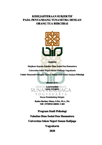 Text (KESEJAHTERAAN SUBJEKTIF PADA PENYANDANG TUNANETRA DENGAN ORANG TUA BERCERAI)