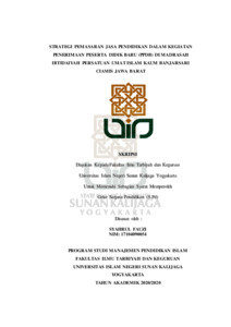 Syahrul Fauzi, NIM.: 17104090054 (2020) STRATEGI PEMASARAN JASA PENDIDIKAN DALAM KEGIATAN PENERIMAAN PESERTA DIDIK BARU (PPDB) DI MADRASAH IBTIDAIYAH PERSATUAN UMAT ISLAM KAUM BANJARSARI CIAMIS JAWA BARAT. Skripsi thesis, UIN SUNAN KALIJAGA YOGYAKARTA.