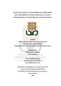 Menurut data Kementerian Koordinator Bidang Pembangunan Manusia dan Kebudayaan (Kemenko PMK) tahun 2023, terdapat sekitar 22,97 juta jiwa penyandang disabilitas di Indonesia, dengan 0,13 persen di antaranya mengalami kebutaan total, dan 6,23 persen lainnya mengalami gangguan penglihatan ringan hingga berat. Disabilitas netra berdampak tidak hanya pada hambatan sensorik, tetapi juga pada aspek psikososial seperti rasa percaya diri, kemandirian, serta kemampuan adaptasi. Dalam kondisi ini, dukungan sosial menjadi aspek penting dalam membangun resiliensi siswa disabilitas netra agar mampu bertahan, bangkit, dan berkembang secara positif. Oleh karena itu, penelitian ini bertujuan untuk mengetahui, mendeskripsikan, dan menganalisis bentuk-bentuk dukungan sosial yang diterima siswa disabilitas netra dalam meningkatkan resiliensi di MTs LB/A Yayasan Kesejahteraan Tunanetra Islam (YAKETUNIS) Yogyakarta. Penelitian ini menggunakan pendekatan kualitatif dengan jenis penelitian lapangan (field research), dan metode analisis deskriptif. Subjek penelitian merupakan guru sebagai subjek 1 dengan inisial guru BK dan siswa disabilitas netra kategori buta total dengan usia remaja tengah (15–17 tahun) dengan inisial subjek 2 yaitu HS sebagai subjek perempuan dan subjek 3 yaitu MH sebagai seubjek laki-laki. Data diperoleh melalui observasi, wawancara semiterstruktur, dan dokumentasi, yang kemudian dianalisis menggunakan teknik reduksi data, penyajian data, dan penarikan kesimpulan. Hasil penelitian menunjukkan bahwa siswa disabilitas netra menerima berbagai bentuk dukungan sosial, baik dari sekolah, keluarga, maupun teman sebaya. Bentuk dukungan tersebut meliputi dukungan emosional, penghargaan, instrumental, informatif, dan jaringan sosial. Sekolah memberikan dukungan melalui program orientasi mobilitas sosial dan komunikasi (OMSK), pelatihan kemandirian, serta pembinaan spiritual. Keluarga memberikan pendampingan emosional dan motivasi, sedangkan teman sebaya menciptakan lingkungan yang suportif dan inklusif. Seluruh bentuk dukungan ini berperan penting dalam membangun resiliensi siswa, yang tercermin dalam kemampuan mereka untuk mengelola emosi, berpikir optimis, mandiri, serta menjalin hubungan sosial yang sehat.