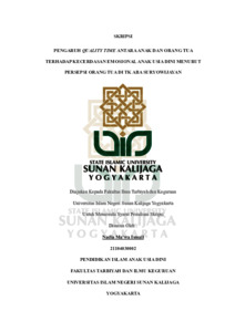 Nadia Ma’wa Ismail, NIM.: 21104030002 (2025) PENGARUH QUALITY TIME ANTARA ANAK DAN ORANG TUA TERHADAP KECERDASAN EMOSIONAL ANAK USIA DINI MENURUT PERSEPSI ORANG TUA DI TK ABA SURYOWIJAYAN. Skripsi thesis, UIN SUNAN KALIJAGA YOGYAKARTA.
