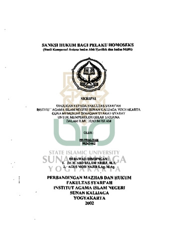 MUZDALIFAH, NIM.: 98363462 (2002) SANKSI HUKUM BAGI PELAKU HOMOSEKS (STUDI KOMPARASI ANTARA IMAM ABU HANIFAH DAN IMAM MALIK). Skripsi thesis, UIN Sunan Kalijaga Yogyakarta.
