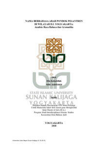 Dita Kafaabillah, NIM.: 1620511018 (2019) NAMA BERBAHASA ARAB PONDOK PESANTREN DI WILAYAH D.I. YOGYAKARTA: ANALISIS RASA BAHASA DAN GRAMATIKA. Masters thesis, UIN SUNAN KALIJAGA YOGYAKARTA.
