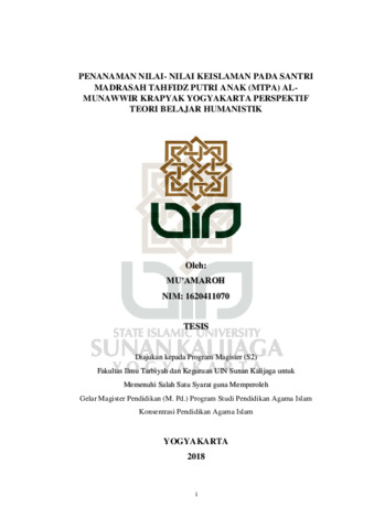 Text (PENANAMAN NILAI- NILAI KEISLAMAN PADA SANTRI MADRASAH TAHFIDZ PUTRI ANAK (MTPA) AL- MUNAWWIR KRAPYAK YOGYAKARTA PERSPEKTIF TEORI BELAJAR HUMANISTIK)
