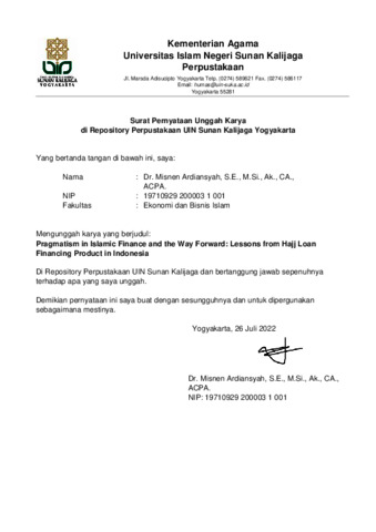 Text (Pragmatism in Islamic Finance and the Way Forward Lessons from Hajj Loan Financing Product in Indonesia)