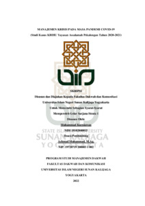 Muhammad Kurniawan, NIM.: 18102040015 (2022) MANAJEMEN KRISIS PADA MASA PANDEMI COVID-19 (STUDI KASUS KBIHU YAYASAN ASSALAMAH PEKALONGAN TAHUN 2020-2021). Skripsi thesis, UIN SUNAN KALIJAGA YOGYAKARTA.