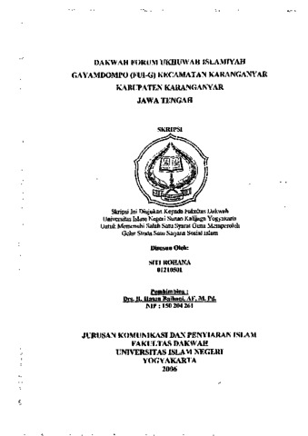 Siti Rohana, NIM. 01210501 (2006) DAKWAH FORUM UKHU"'AH fSLAMIYAH GAYAMDOMPO (FUI-G) KECAMATAN KARANGANYAR KABUPATENKARANGANYAR. Skripsi thesis, UIN SUNAN KALIJAGA YOGYAKARTA.