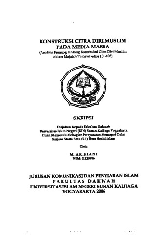 M. Arifiani, NIM. 01210706 (2006) KONSTRUKSI CITRA DIRI MUSLIM P ADA MEDIA MASSA (Analisis Framing tentang Konstruksi Citra Diri Muslim dalam Majalah Tarbawi edisi 101-103). Skripsi thesis, UIN SUNAN KALIJAGA YOGYAKARTA.